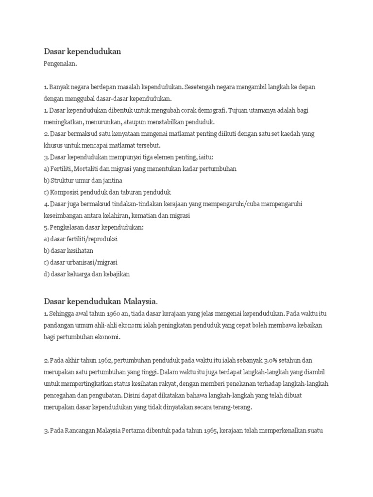 View Dasar Kependudukan Negarapdf from PHILO AD0063 at Northern University of Malaysia. Ia menggalakkan dan menyokong strategi bagi amalan. DASAR KEPENDUDUKAN MALAYSIA KE ARAH 70 JUTA PENDUDUK LATARBELAKANG LATARBELAKANG - Disarankan oleh YAB Perdana Menteri Seri Dr.