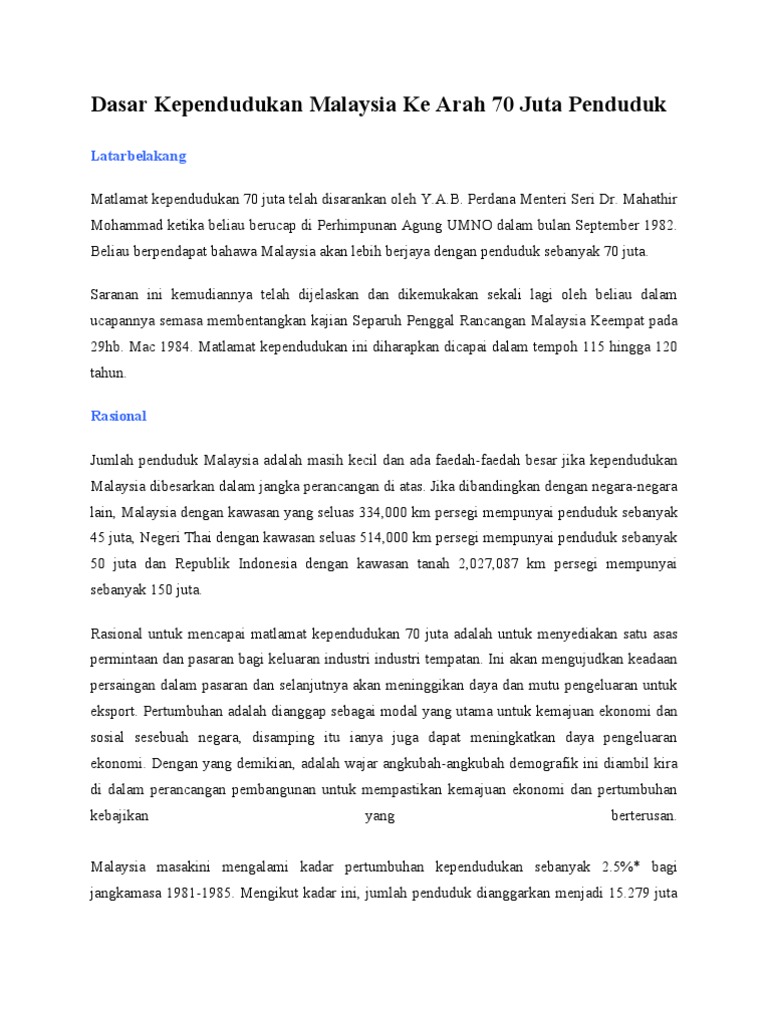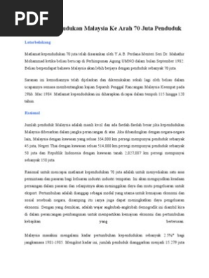 Dasar Kependudukan Malaysia Ke Arah 70 Juta Penduduk Pdf